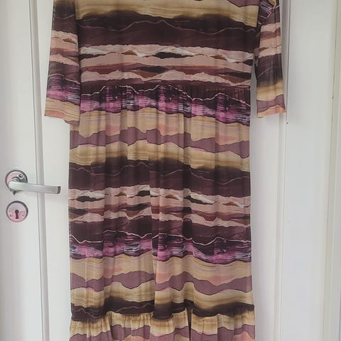 Kjempe fin kjole fra b.young, kun brukt et par ganger. Ser ut som ny. Svart underkjole med glitterstoff over. Avtagbare skulderstropper om man vil ta de av, knytebånd i silke rundt livet, vatterte brystskåler.