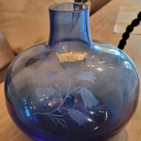 Feilfri blå vase fra Magnor i glass