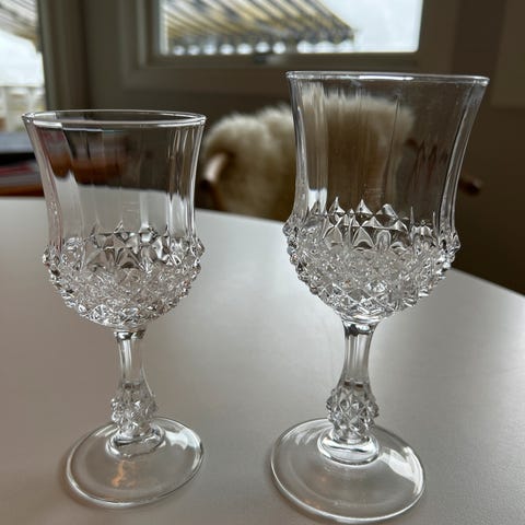 Glassene er 14 cm høye og 7,5 cm brede øverst.