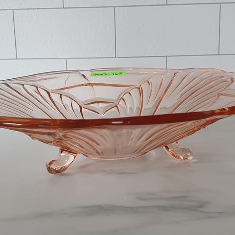 Fersken farget pressglass bolle fra Hadeland fra 50 tallet, strøken.