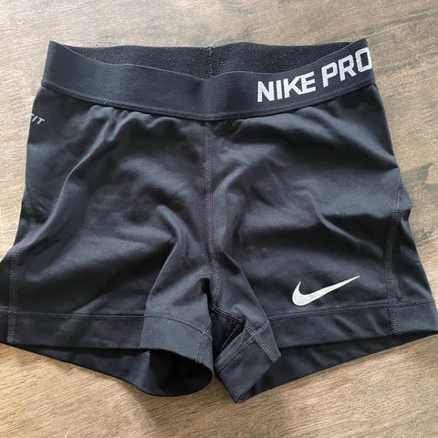 Oransje, kort treningsshorts fra Nike i str S. Liten lomme med glidelås bak.