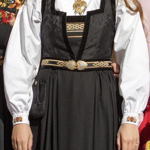 Belte med spenner, veske, og silkesjal tilhørende drakten følger med. Dette må du kjøpe i tillegg ved bunadskjøp i butikk. Mulighet for å sy inn og ut ift størrelse.,