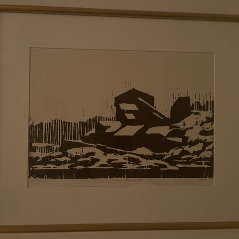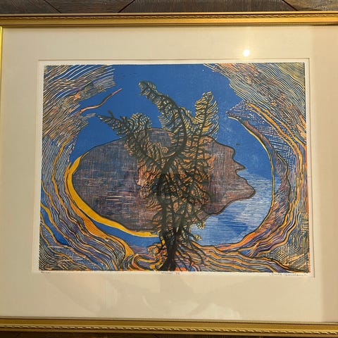 Selger et innrammet eksemplar av trykket «Nordisk Zebra» fra kunstneren Morten Juvet.