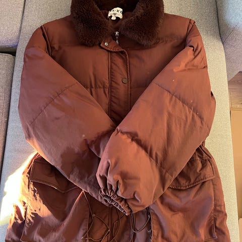 Lite brukt jakke fra Eddy's str. S selges. Lommer i siden, og belte i livet. Strikk bak. Stor i størrelsen. Veldig lekkert jakke.