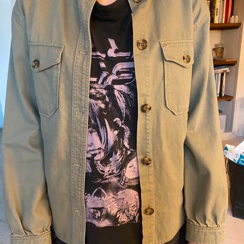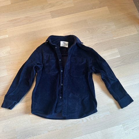Fin marineblå skjortejakke fra H&Mi str 158. Veldig fin utenpå f. Eks hettejakke. Trykknapper på lommer og foran. Mykt litt flosset bomulls stoff. 100% bomull.