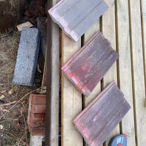 Denne muren skal rives så selger takstein, må hentes og bæres av kjøper.