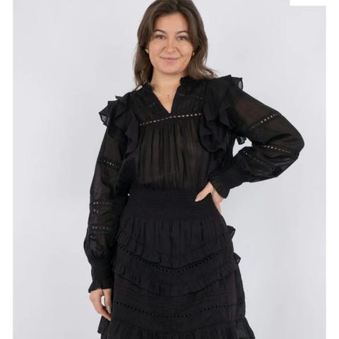 Kara Linen Dress fra Ella & il er den perfekte kjolen, som er like fin å ha på fest som til hverdags. Den har vakre, voluminøse ermer og et belte i livet som gir den en smalere form. Oppleves stor I størrelsen, så passer fint til en small person. Er selv en stor small og den passer fint