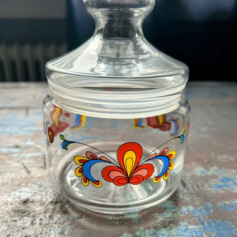 Vintage herlig retrostil glass. Krukke trolig brukt til buljong o. l.