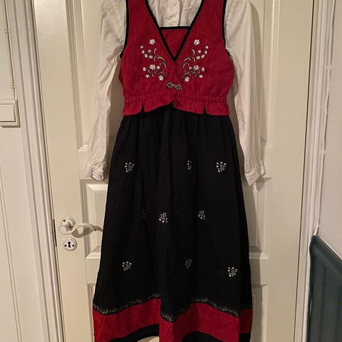 Ubrukt festdrakt kjøpt til vår datter, men som begynte i speider'n og ønsket å gå i toget med de på 17 mai i fjor😊 Ny pris på CoopObs 699,- Skjorte kan følge med, denne er str. 8/9 år. Det samme med capen/kappen, denne har str. 140. Må hentes.