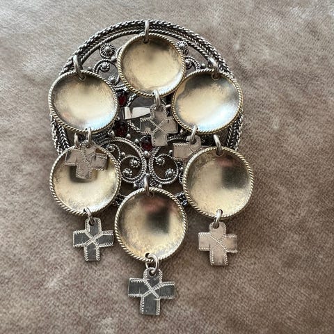 Vevd i ullstoff, sydd av ei dame i Vågå.