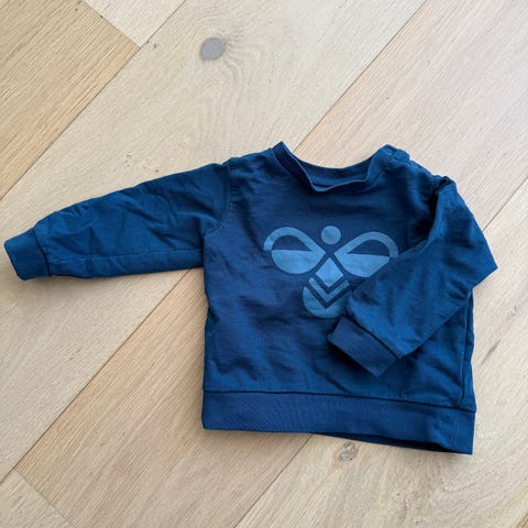 Fint brukt genser fra hummel i størrelse 62. Ingen hull/flekker som jeg kan se. Logo er begynt å løsne litt i kanten på de «øynene». Er ikke mye, har prøvd å ta bilde av det.