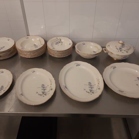 Nydelig gammelt servise. 8 av vær tallerken. 7 kopper.selges til høyeste bud over kr 1000. Må hentes her. Sender ikke.