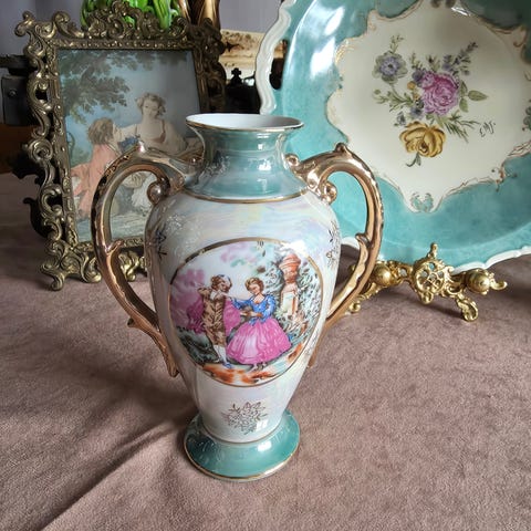Gammelt vase med roser i porselen