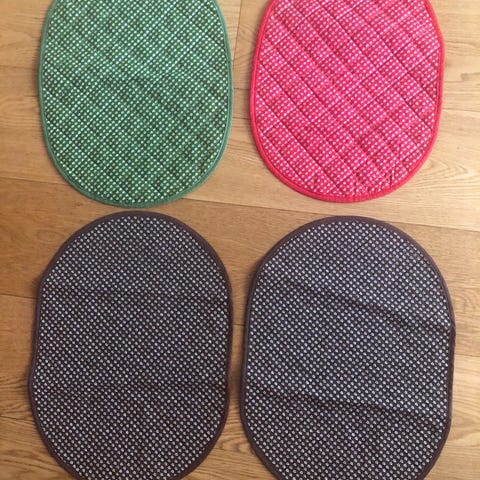 Ønsker flere runde tallerkendempere (Ø19–20cm) med retromønster. Se bilde av de jeg har, andre farger og mønster kan også være interessant. Har du noen du ikke bruker, ta kontakt!