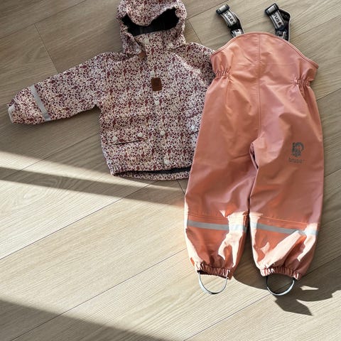 Pent brukt regnsett fra Bruse. Ingen hull eller merker annet enn litt antydning til missfarging på bukse(se bilde).