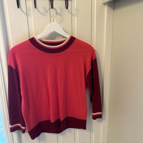 Nydelig rød strikke genser, har blitt litt liten til meg .