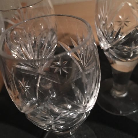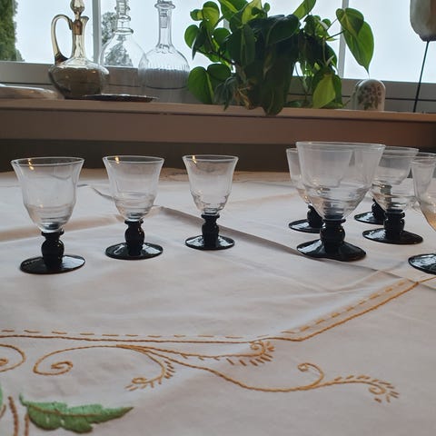 Eldre glass selges kr 250. 4 av de største og 6 av de mindre. Lite nag på fot på et av de minste, ellers ok. Normale bruksmerker. Hentes i Skien, sendes med Fiks ferdig eller PostNord kr 69