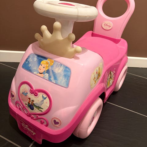 Kjekk rosa gåbil med Disney prinsesse dekorasjoner som passer for små barn som øver seg på å gå. Gåbilen har en flott tiara med lys, i tillegg til andre lys og lyd aktiviteter.