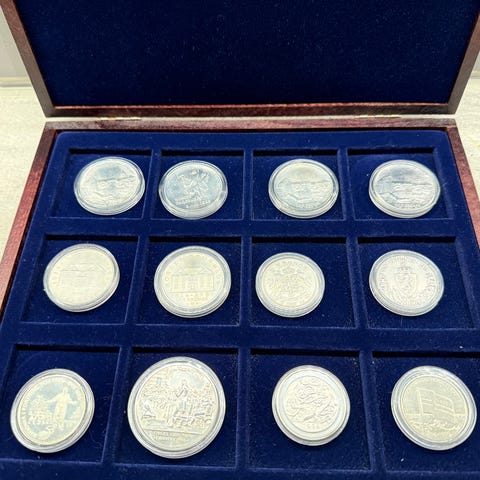 All perfectly unc, proof quality. Small scratches on wooden box. Set no. 489/500.