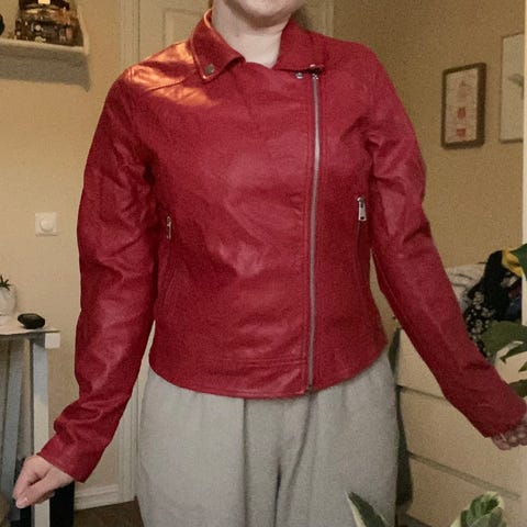 Rød Bikerjakke, PU, S-M, Vera Moda Se mål
