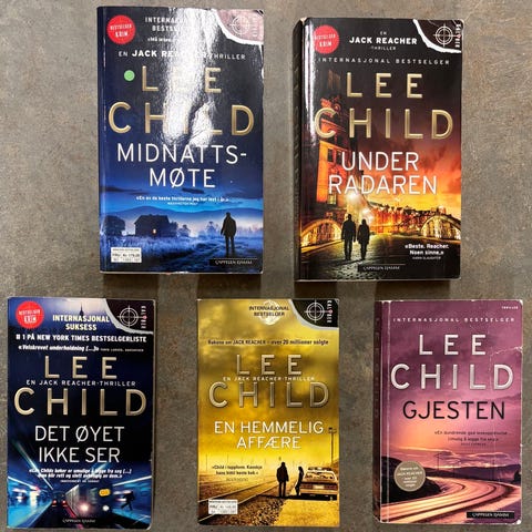 Mange spennende bøker om Jack Reacher.