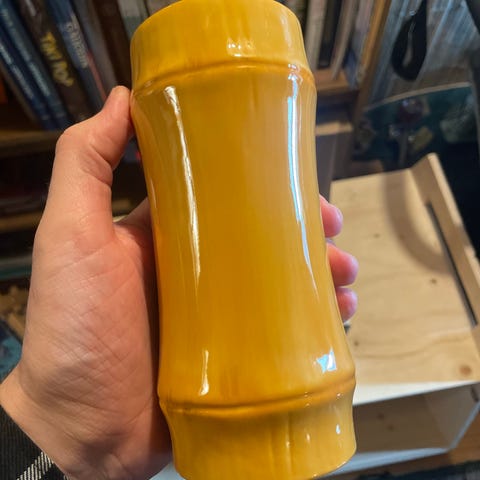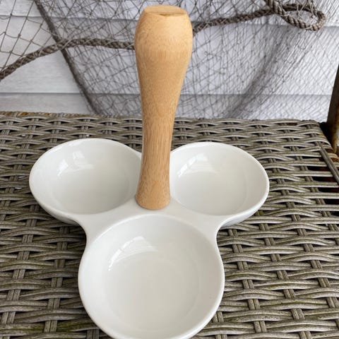 Nesten ikke brukt. Et lite hakk på håndtaket.