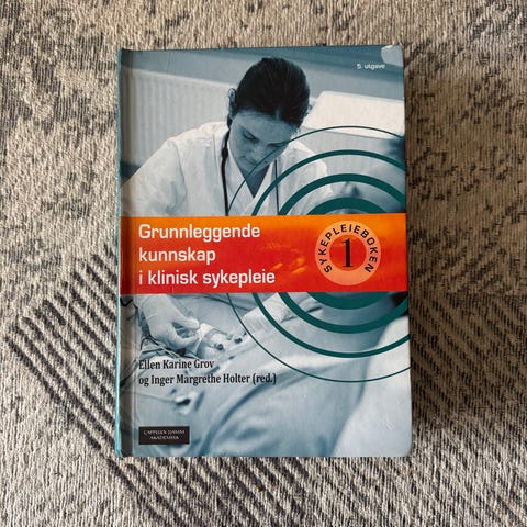 Grunnleggende kunnskap i klinisk sykepleie av Ellen Karine Grov og Inger Margrethe Holtet (red.). 5. utg, utgivelsesår 2015. Nypris 1679,- Ingen markeringer, noen bruksmerker.