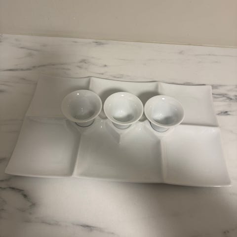 Tapasfat med 3 små skåler selges kr. 200,-