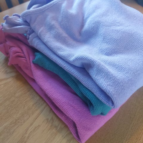 3 pent brukte bomullsgensere fra HM og Lindex selges samla. De to ensfarga har foret innide og er klare og sterke i fargene. Den med enhjørning er i tynnere jersey og har puffermer.