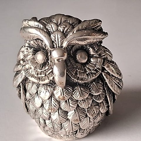 Gammel pris 150 kr. Ny pris 80 kr - Blåøyd og grønn ugle. ca 4 cm høy.