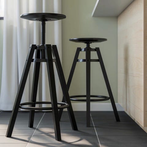 Barstolene er laget av heltre akasie og stål, og er svært stabile og holdbare. Stolens høyde kan justeres etter dine behov. Det har blitt tatt godt vare på hvert trinn i byggeprosessen, enten det er polering og lakkering. Settet er enkelt å montere. Leveringen inkluderer 2 barstoler.