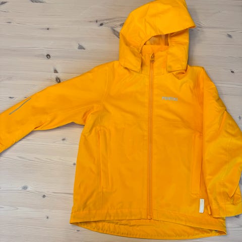 Reima tec. Allværs-/regnjakke til barn. Str. 116cm. Det vanntette, men pustende materialet beskytter mot regn og vind samtidig som det lar fuktighet slippe ut. Litt brukt. 250kr.
