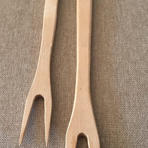 Den er laget av tre og har 6 gafler.