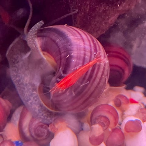 Vakre sandsnegler, gjør samme nytten som malaysiske sandsnegler, men er finere 😊 Eget oppdrett. Blir ca 2 cm lang. Størrelsen på de du kjøper varierer noe, de vokser relativt raskt.