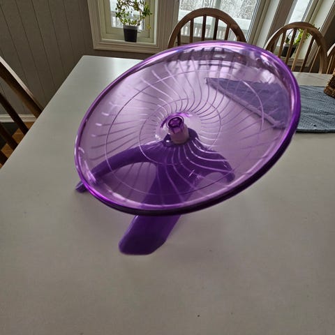 Hamsterhjul og klatrestige i tre, matskål og hengekøye