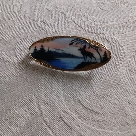 Vakker emalje brosje i 925S Sølv med motiv av reinsdyr - Nils Elvik.