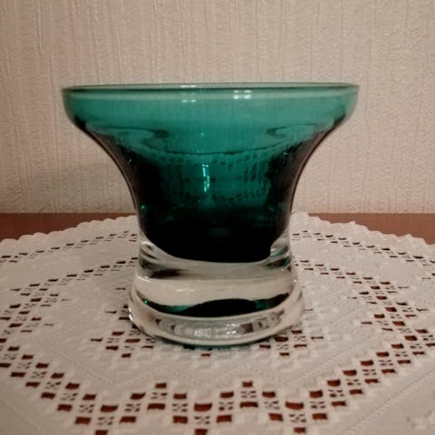 Nydelig bolle i grønn farge Telemark fra Hadeland, d 17,5 cm h 10,2 cm selges kr 250 Solgt