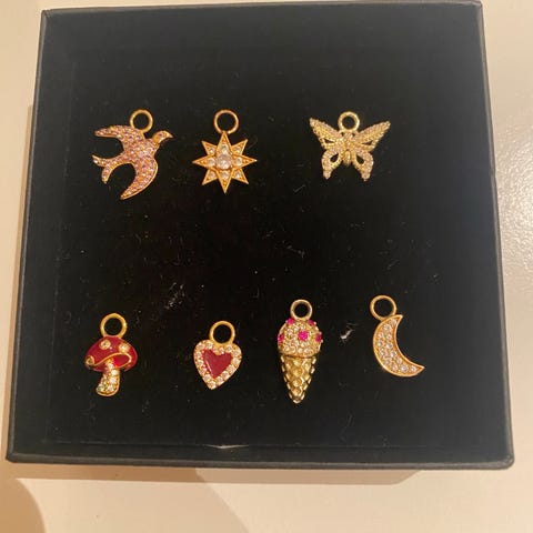 Selger hele samlingen min av Emilia bon dep, smykket, anheng, øredobber og nesten alle charms er original Emilia bon dep, kun tre charms er ikke original, selges samlet for 4000kr eller så kan man sende melding om enkelt priser🌸
