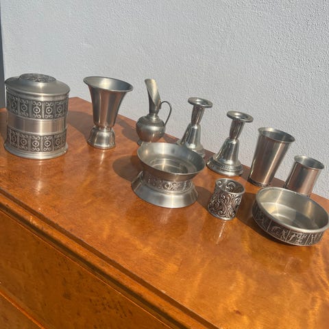 Fatet/begeret er Pewter Haugrud og 14 cm i diameter.