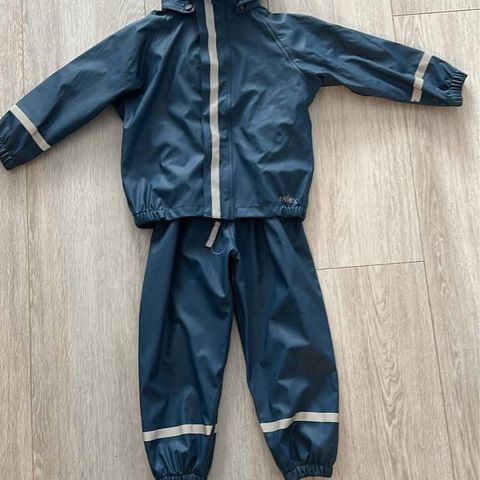 Som nytt regnsett str 8 år husker ikke eksakt vannsøyle men 8-10000mm tror jeg. Pyttpytt er merket. Mørk blått. Selges 100,- (nypris var 600,-)