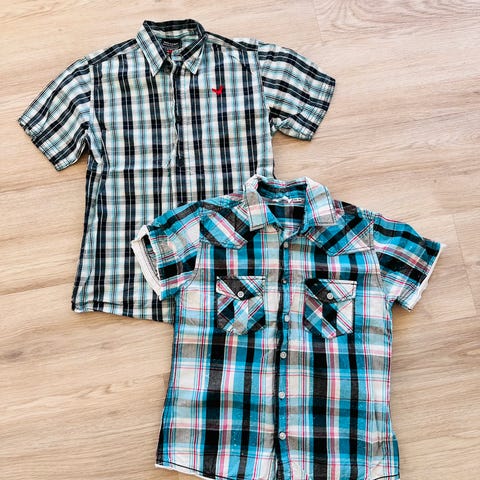 Tre bluser og 5 T-skjorter i bomull, av merker som Nike, NameIT, Disneyland, Lindex, Fast&Furious og MeToo selges. Det er et lite hull i hver bluse, som kan lappes enkelt.