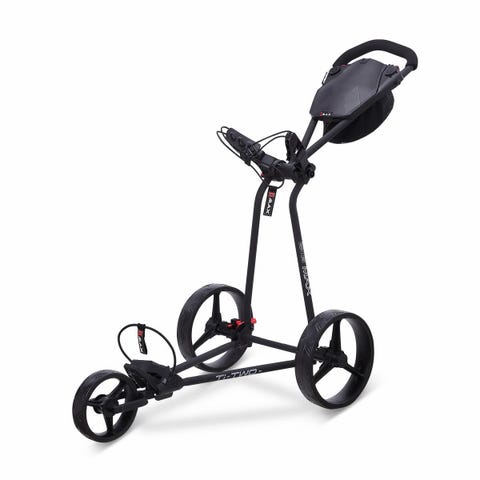 Big Max Autofold X er en fantastisk 3-hjuls golftralle med et stilrent design og en sort farge som passer nærmest alle golfbagger. Den største wow-faktoren for denne trallen er hvor enkel og kjapp den er å slå den sammen, og opp igjen. Når trallen er foldet så er dette en av de mest kompakte golftrallene på markedet. Her får du en robust og stødig golftralle som lett lar deg organisere tilbehøret i beholder med topplokk. I tillegg finnes det et hav med tilbehør til tralle slik at du får akkurat det du trenger.