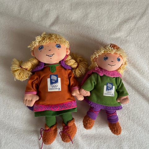 Jeg selger 4 fine maskott figurer ( myke ) fra Lillehammer OL 1994. Kristin og Håkon.