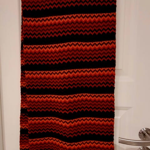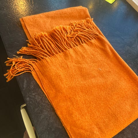 Langt sjal , som kan brukes over skuldre eller rundt hals , eller som detalj over hoften!