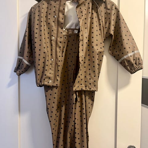 Svart og rosa regnjakke/regnbukse str 110/116