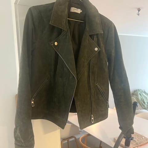 Utrolig fin semsket skinnjakke fra Only. 💚