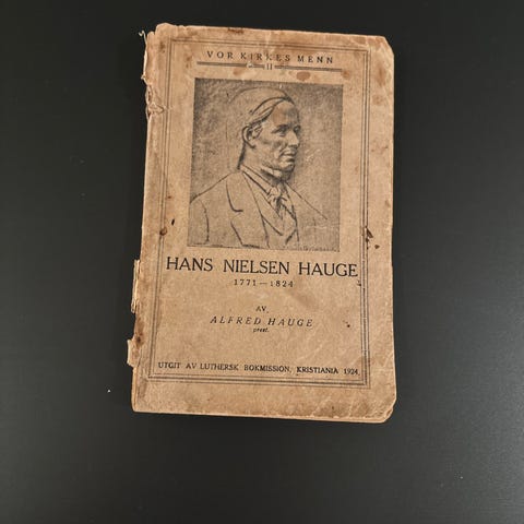 Boken "Hans Nielsen Hauge. Mannen som vekket Norge." Av Dag Kullerud. Utgitt i 1996. 350 sider. Slitt omslag.