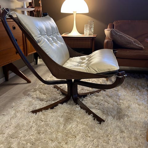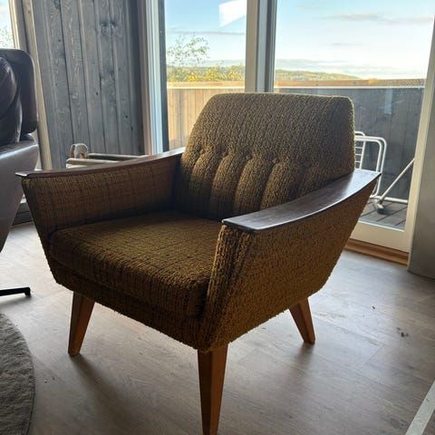 Selger en retro lenestol fra 80-tallet. Ukjent designer. Stolen kan snurre.