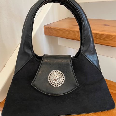 Vesken er i skinn, sort. Den er helt sort, men skinner litt i bildene.