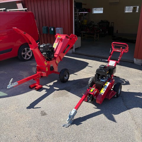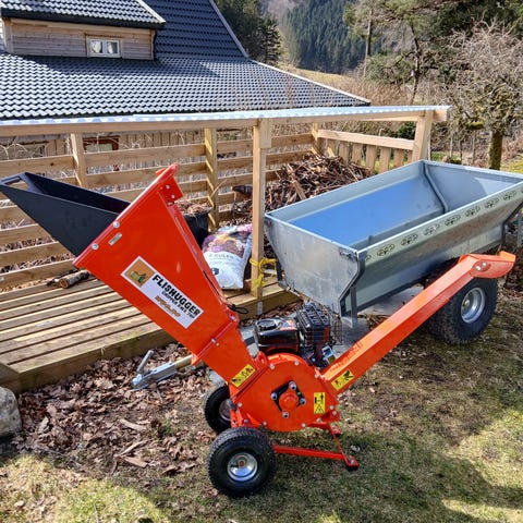 Beaver flishugger leies ut. 7 hk bensinmotor som sparker fra seg. Max 50 mm diameter. Fungerer best på treverk uten mye løvverk. Påmontert ekstra hengerdrag som gjør det lettere å forflytte med plentraktor, ATV e.l.